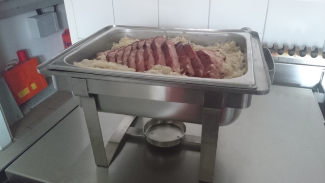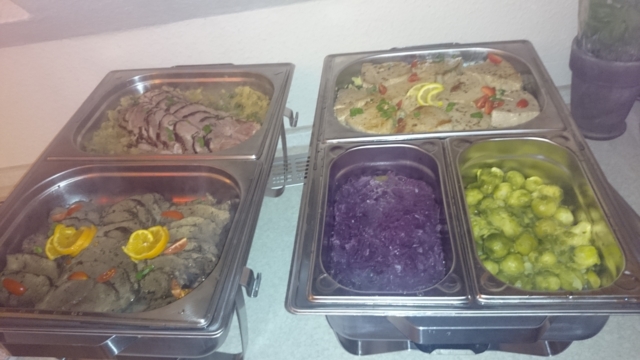 Bestandteil eines Buffets ist – neben Platten, Salate, Desserts – auch warme Speisen. Diese ergänzen das Buffet und werden pur (z. B.Beefsteak, verschiedene Formen und Größen) oder kombiniert (Kassler mit Sauerkraut) bereitgestellt. Alle warem Speisen befinden sich in geeigneteten Servicebehältern.