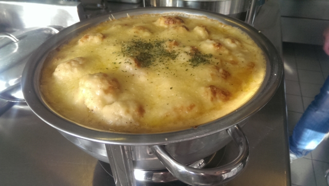 z. B. 5-Gänge-Menü: Suppe, warme Vorspeise, Hauptgericht, Dessert, Käsehäppchen oder Mokka